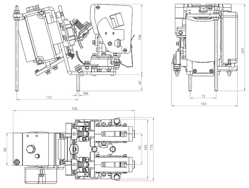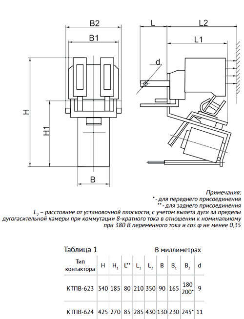 Габаритные и установочные размеры контактора КТПВ 623
