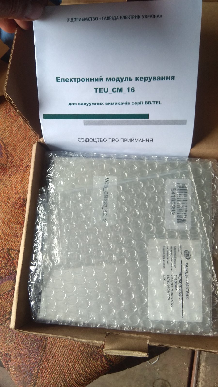 Модуль управления TEU_CM_16_2(220_2); вакуумным выключателем BB/TEL-10 с током отключения до 31,5 кА (Shell-2), со встроенным модулем питания от токовых цепей. Напряжение питания :