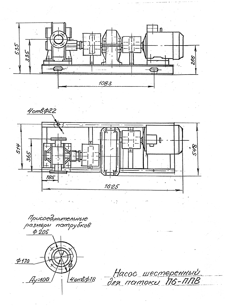 Насос состоит из стального корпуса со всасывающим и нагнетательным патрубками, одной пары рабочих шестерен и двух чугунных крышек с запрессованными в них подшипниками скольжения Стальной корпус, зажатый между двумя чугунными крышками посредством шпилек, является камерой насоса.
