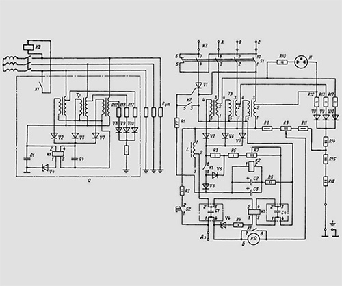 Схема аппарата (реле утечки) РУ-380 с самоконтролем на напряжение сети